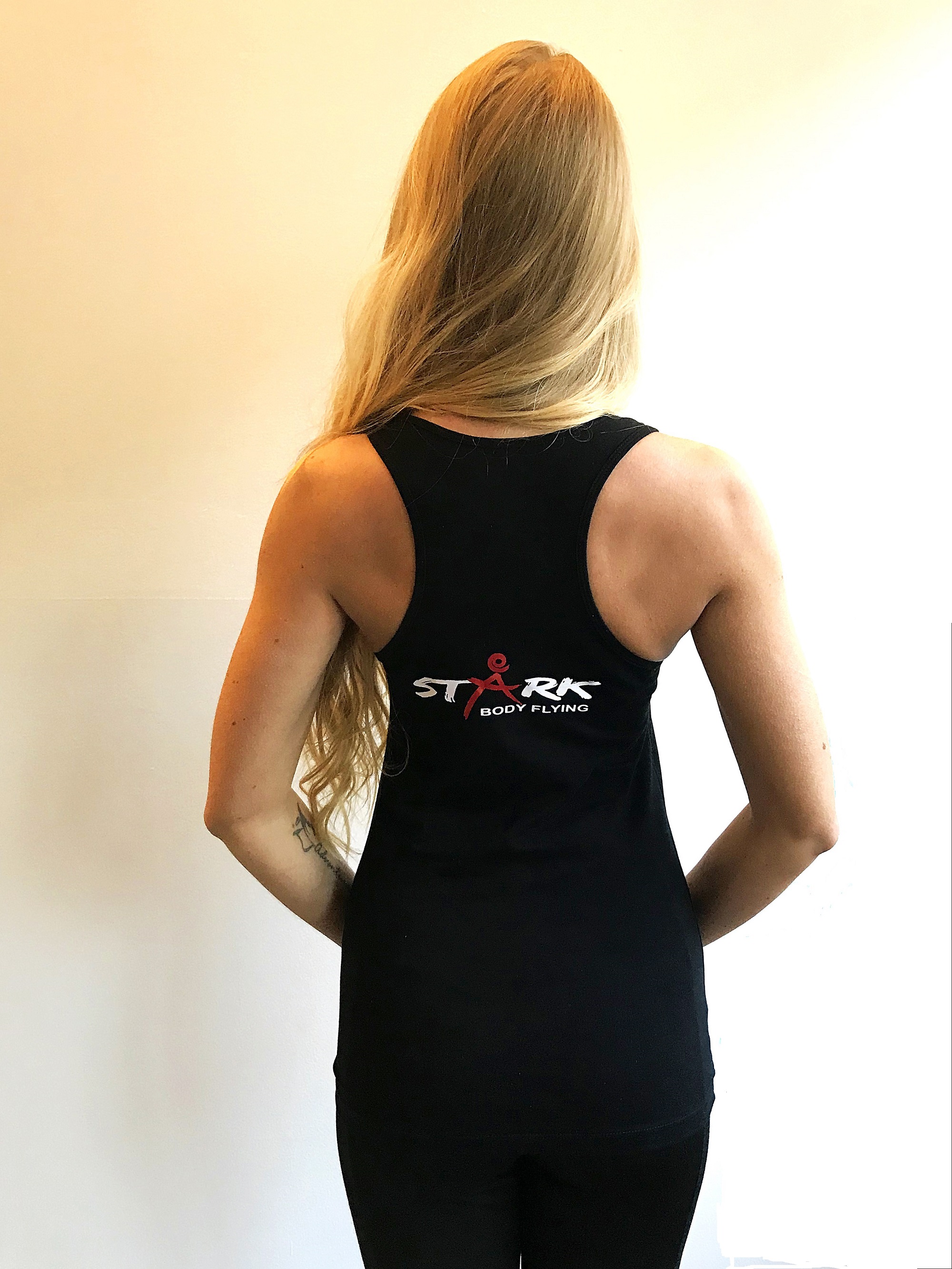 Canotta con taglio all’americana in cotone elasticizzato,colore nero, con logo Stark Body Flying sia davanti che sul retro
